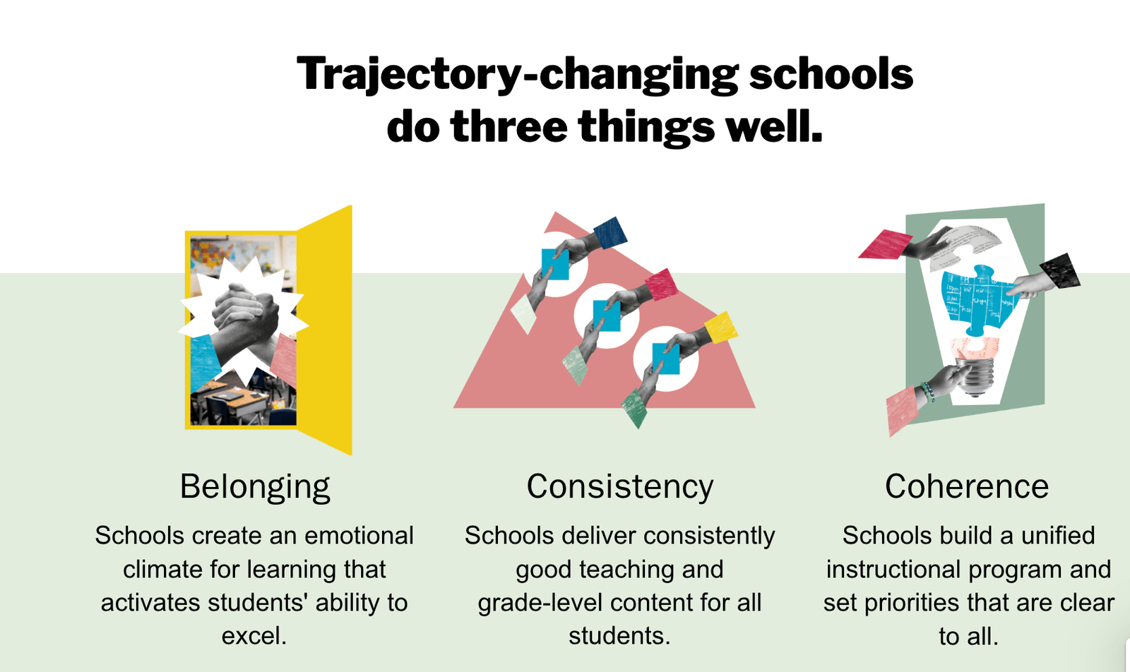 Like a GPS map, we are offered multiple routes to get from Point A to Point B. We are given feedback on our journey, once we choose a route – when we make a wrong turn or an obstacle pops up, the route re-calculates. What is pivotal to our journey and to get every kid to the “red dot” are: high expectations for every kid and every education stakeholder, paired with clear targets (where we want to go) and accountability measures to ensure every kid is receiving a quality education that fits their needs AND meets expectations (how to respond and adjust course).