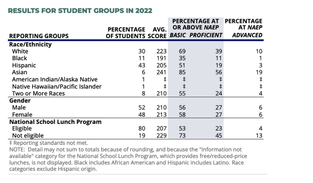 Note: All charts and graphs courtesy of the National Center for Education Statistics and the National Assessment of Educational Progress.